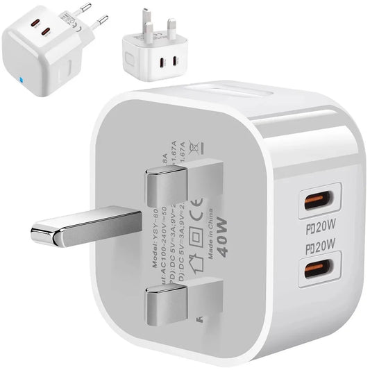 Dual USB C Wall Charger | Fast Power Adapter Plug 40W
